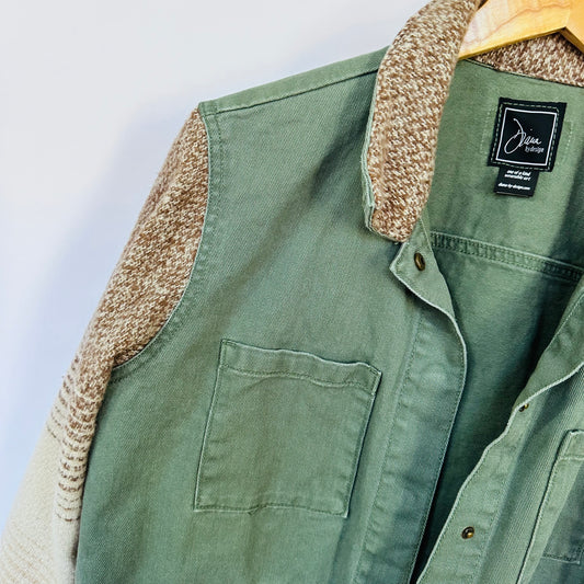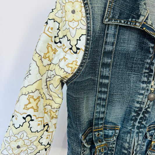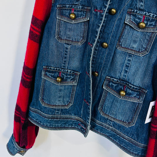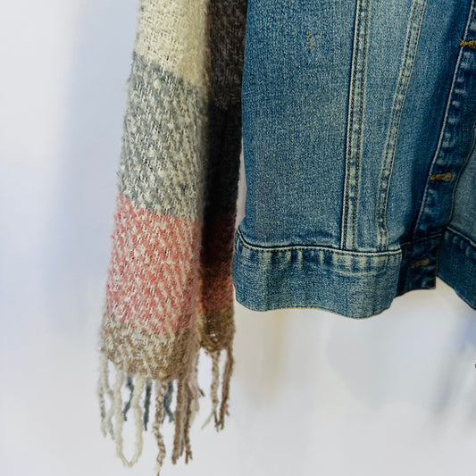 light wash feminine denim with soft plaid fringed sleeves [m]