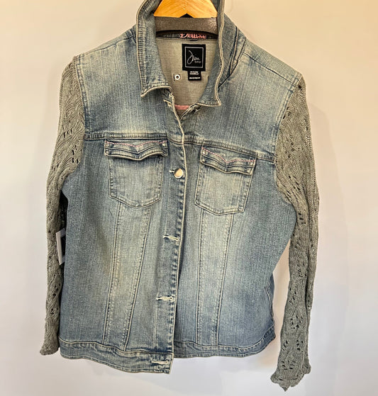 soft gray knit + distressed denim jacket [l/xl]