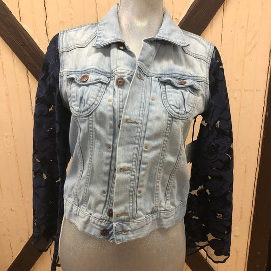 soft feminine denim + navy lace bells