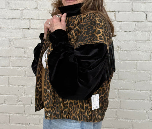 cheetah denim meets velvet + fringe! [xl]