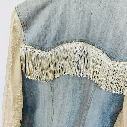 white denim, white lace + fringe [m]