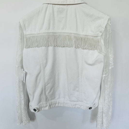 cuffed white lace + blue denim jacket [s]
