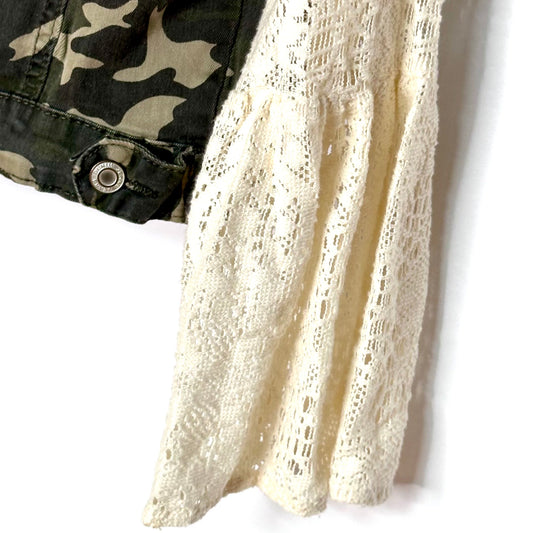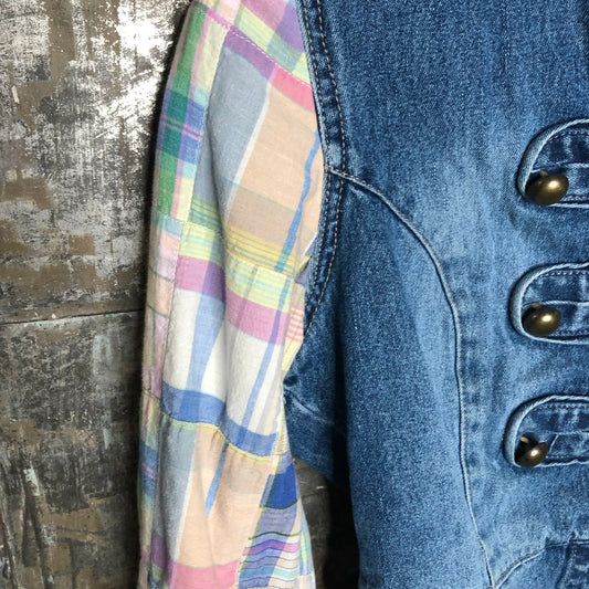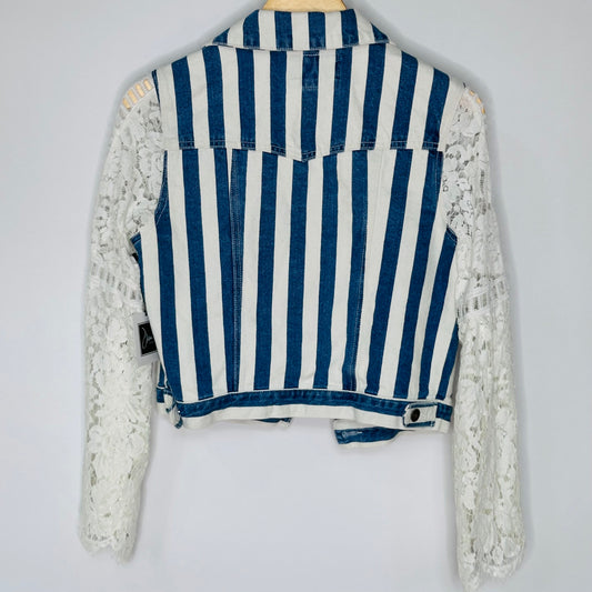 white floral + lattice lace boldly striped cropped denim jacket [s]