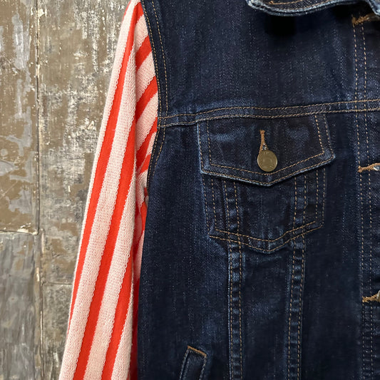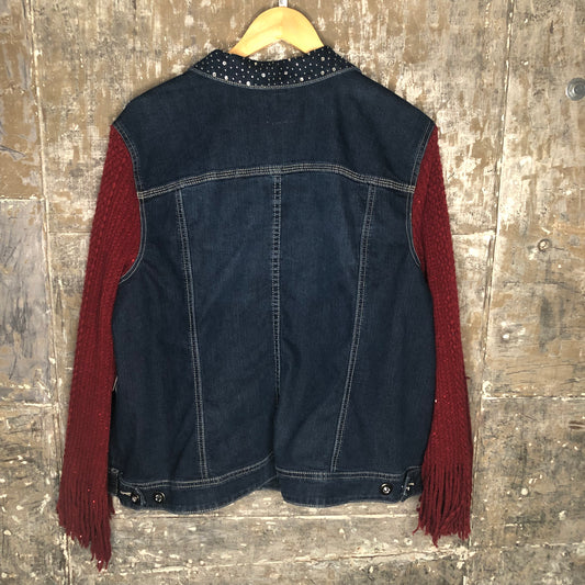 cuddly cranberry knit + blinged blue denim jacket, [xxl]