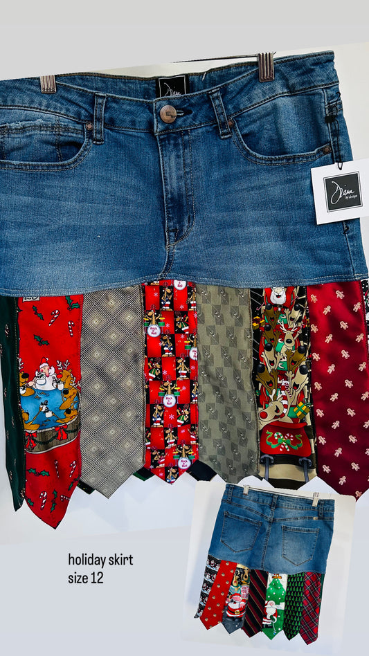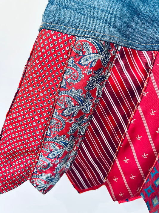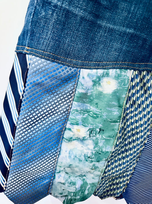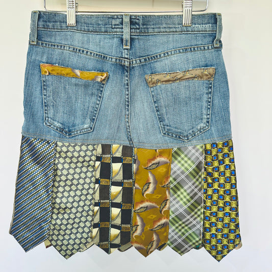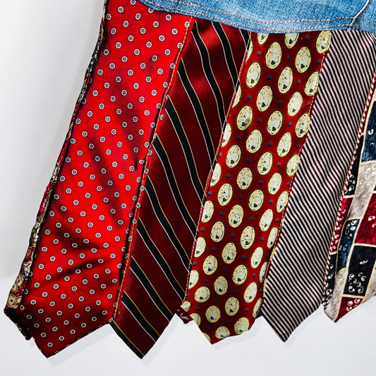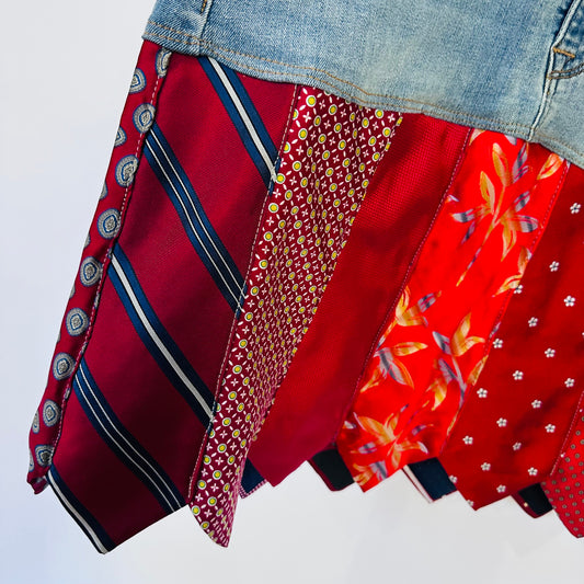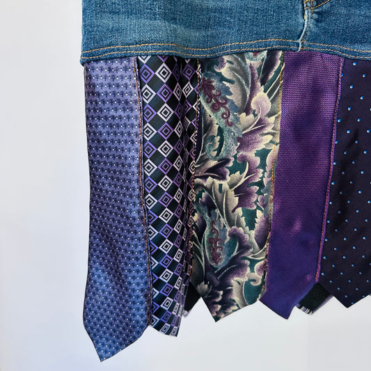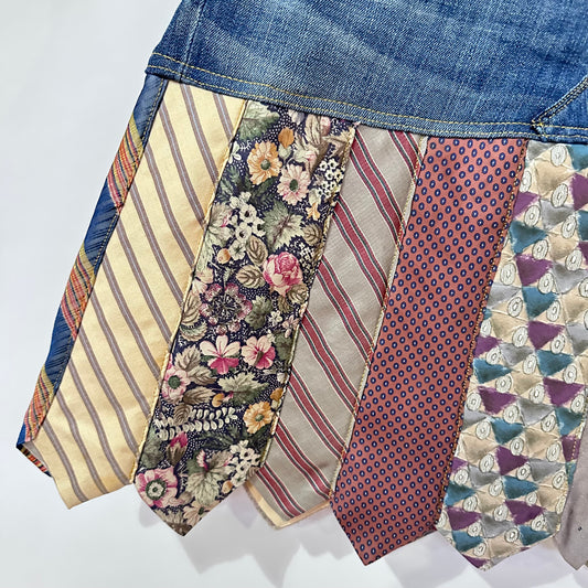 revitalize your wardrobe with my denim + necktie skirts, a playful combination that marries the comfort of denim with the whimsy of colorful neckties