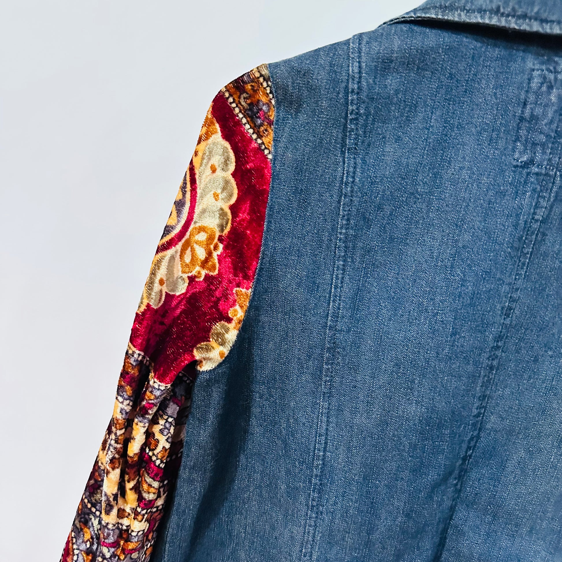 - this jacket combines soft velvet + denim