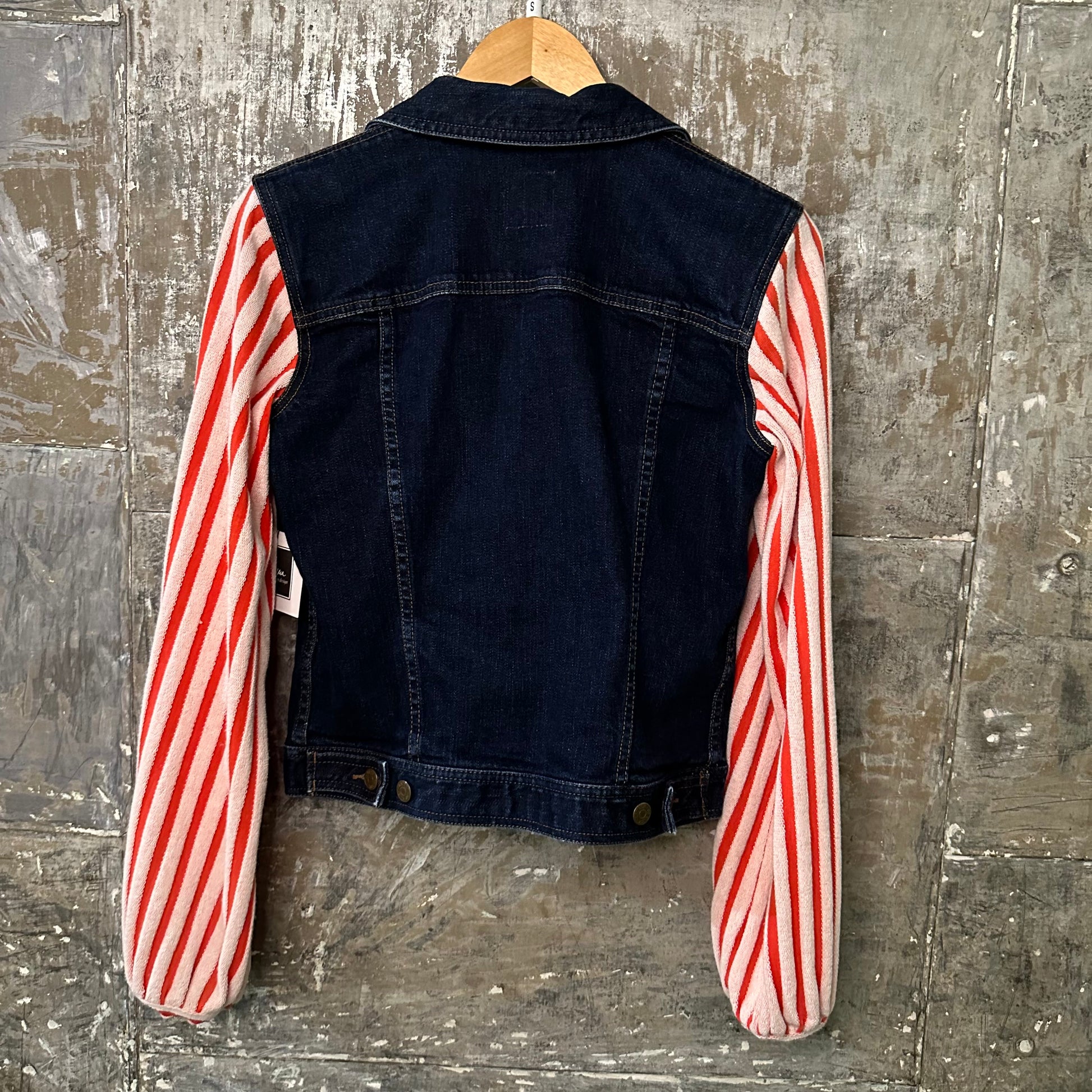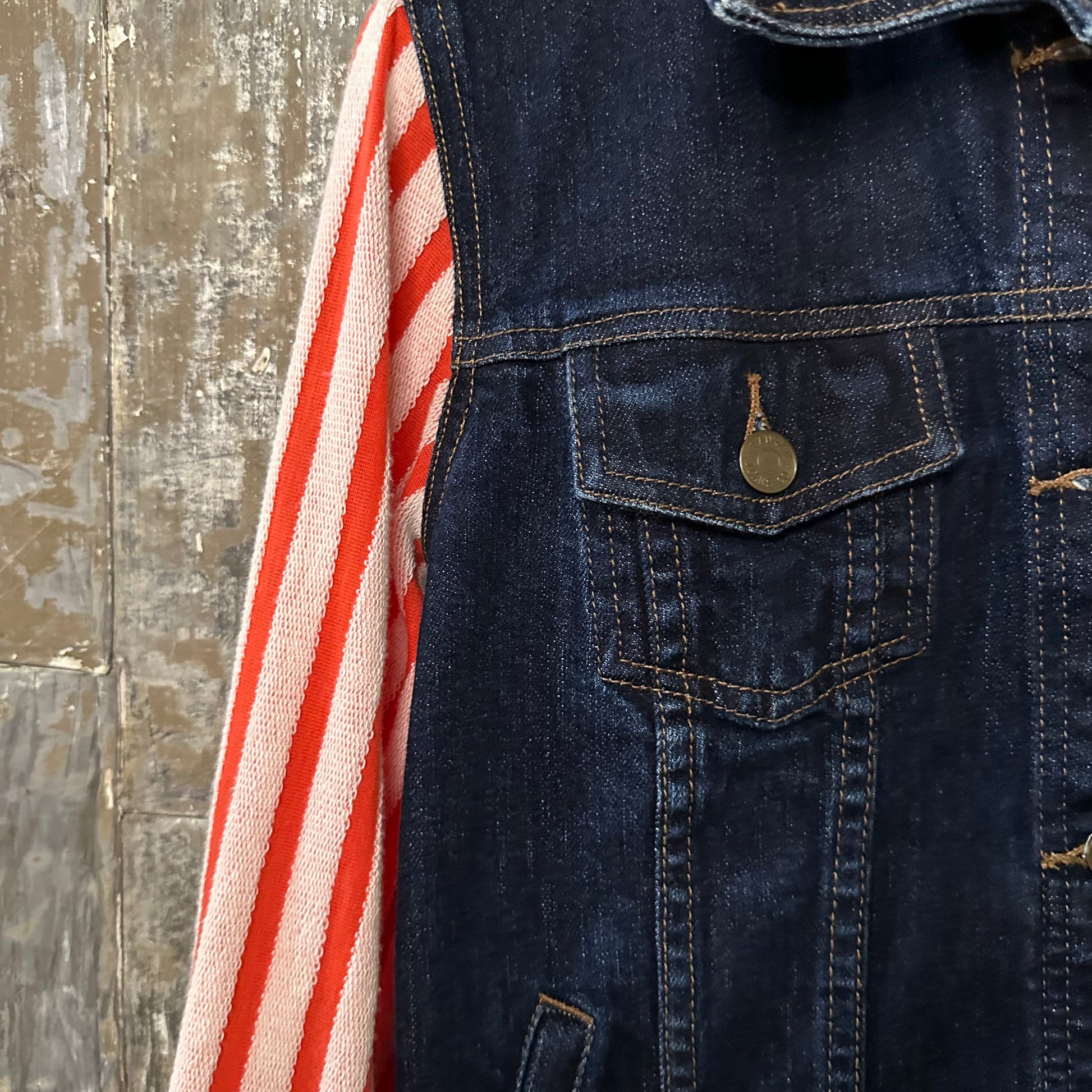 creamsicle stripe sleeved dark denim jacket [m]