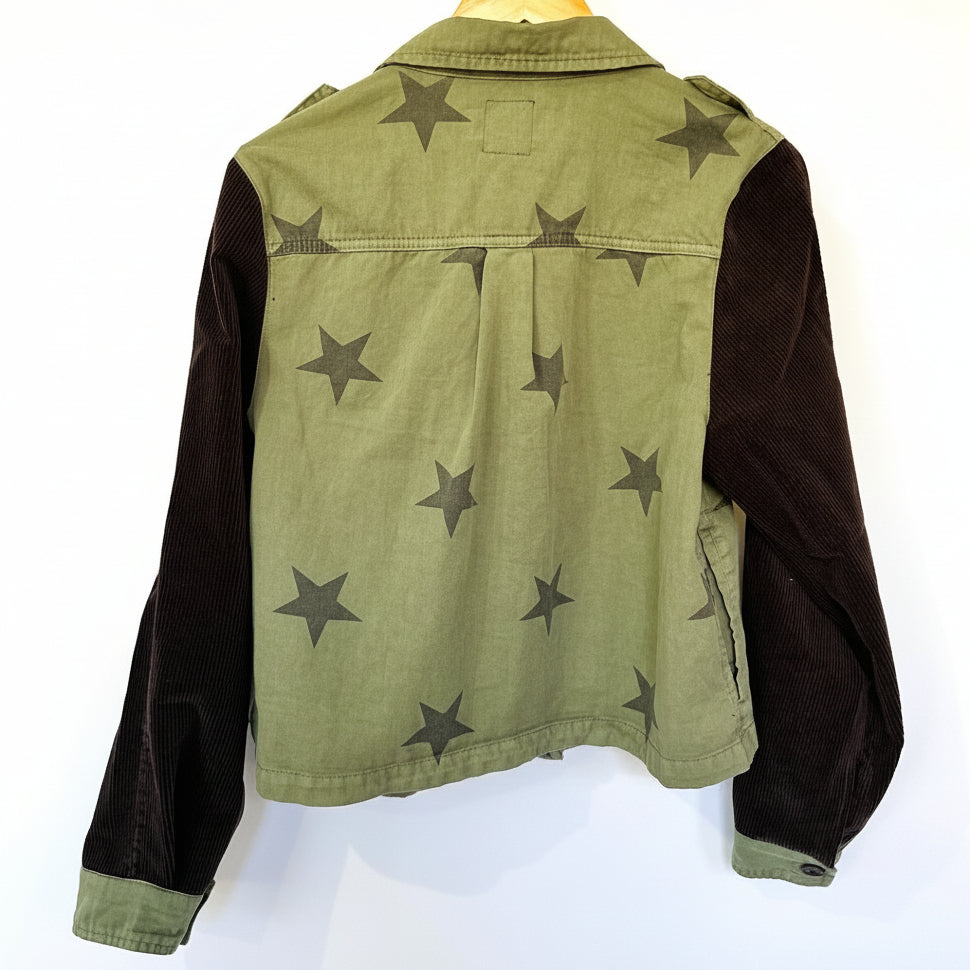 - 'blank nyc' muted green w/stars shirt style jacket, [100% cotton]