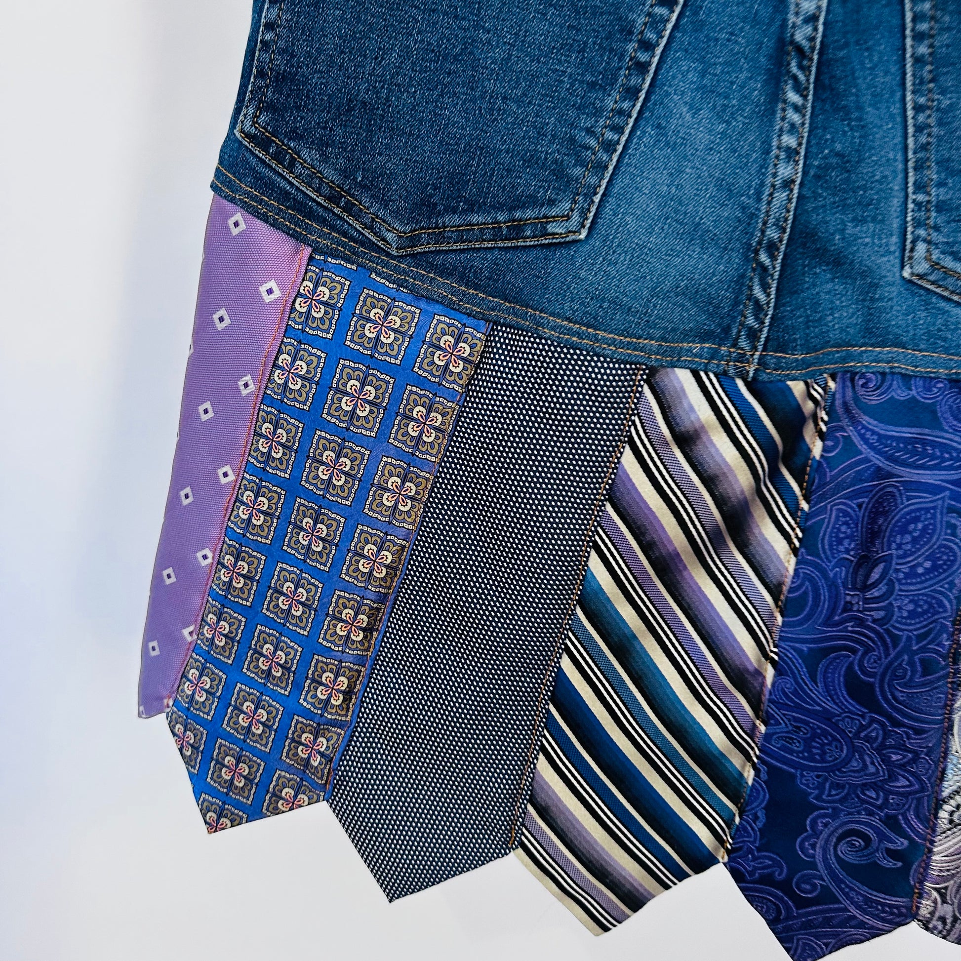 rock a high-waisted silhouette in rich deep blue denim paired with plum ties. this delivers style + versatility—dress it up or keep it casual.