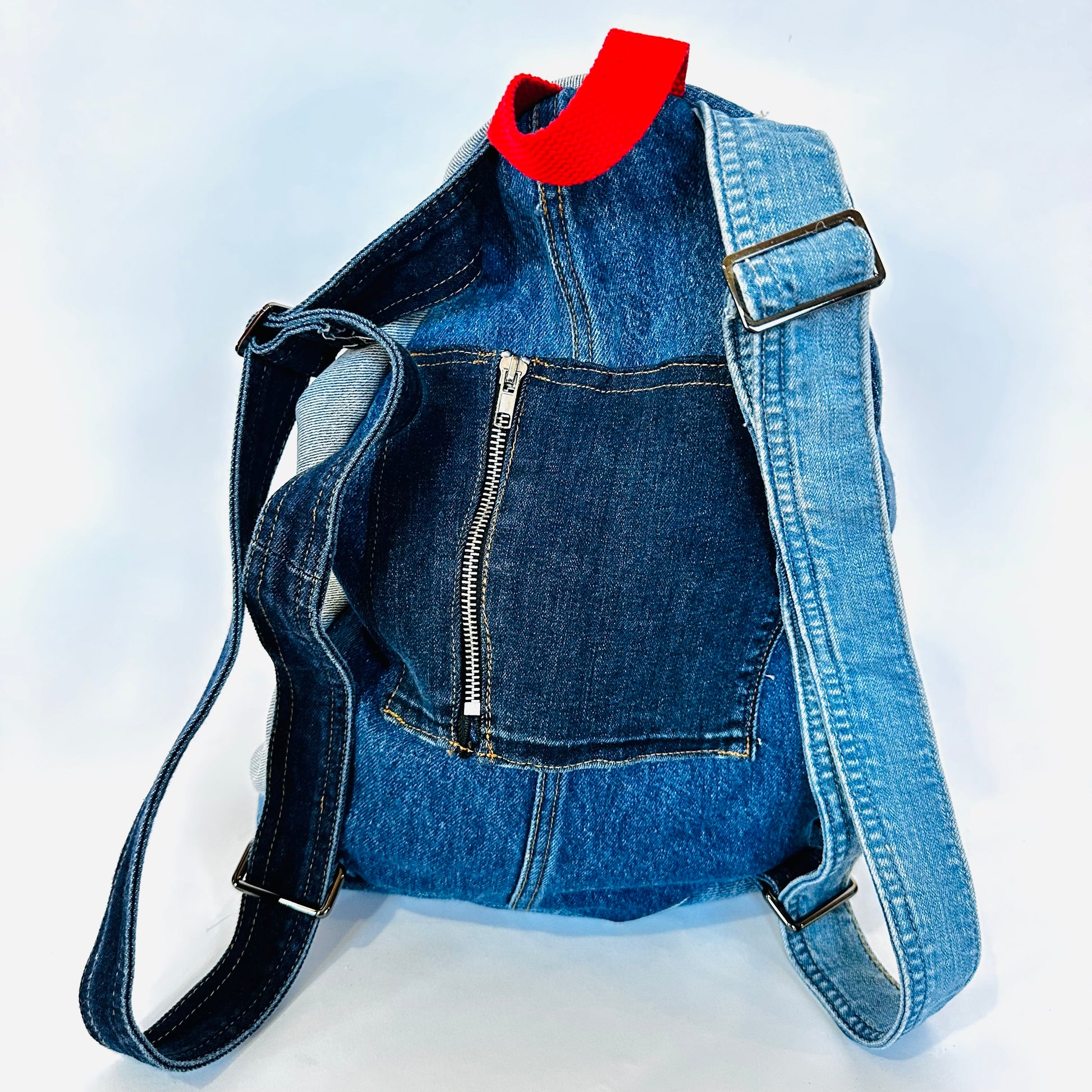 made from denim jacket sleeves, cuffs, waistbands etc.